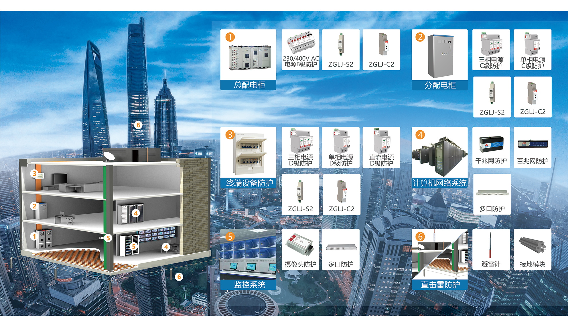 中光建筑防雷方案符合GB50343-2012《建筑物電子信息系統(tǒng)防雷技術(shù)規(guī)范》(IEC62305),包含直接雷防護(hù)、屏蔽、等電位連接、合理布線、接地和適當(dāng)配置電涌保護(hù)器等綜合防雷理論。古建筑防雷符合GB 51017-2014《古建筑防雷工程技術(shù)規(guī)范》(IEC62305)。