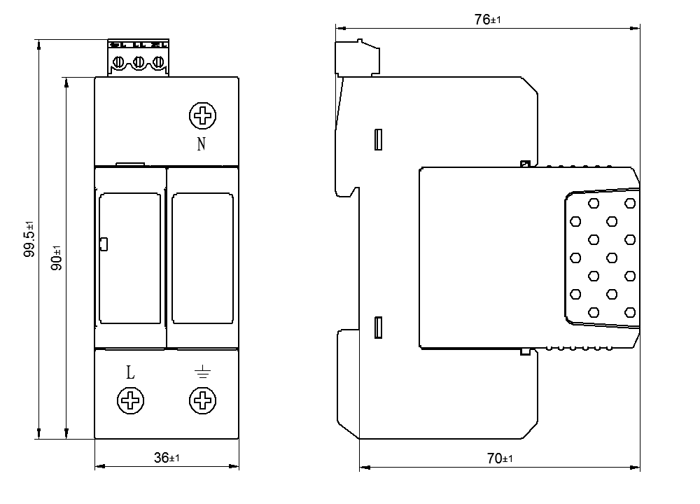 | 外形尺寸 | 90 mm×36 mm×76 mm (不包含遙信端子) | |