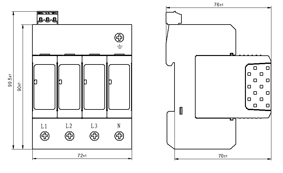 | 接線端子連接銅導(dǎo)線的截面積 | 多芯線:1.5~25 mm2,單芯線: 1.5~35 mm2 |