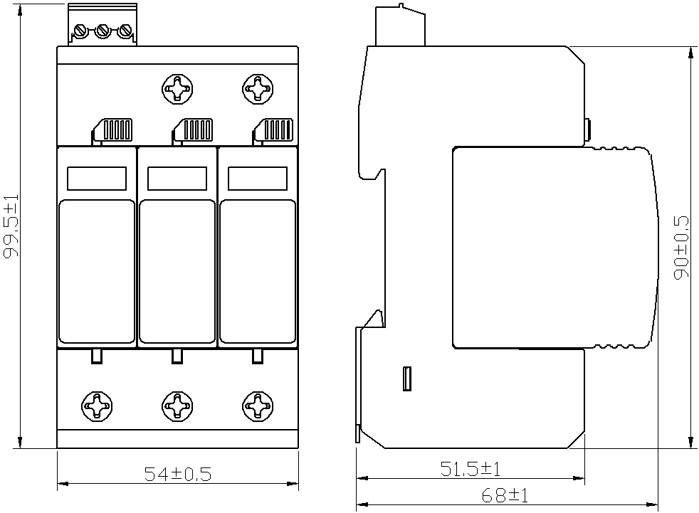 | 外形尺寸 | 90 mm×54 mm×68 mm (不包含遙信端子) |