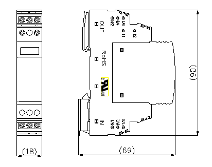 | 外形尺寸 | 90 mm×18 mm×69 mm (不包含遙信端子) |