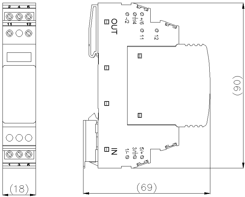 | 外形尺寸 | 90 mm×18 mm×69 mm (不包含遙信端子) |