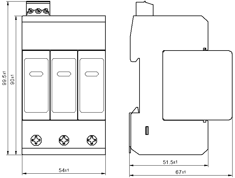 | 外形尺寸 | 90 mm×54 mm×67 mm (不包含遙信端子) |